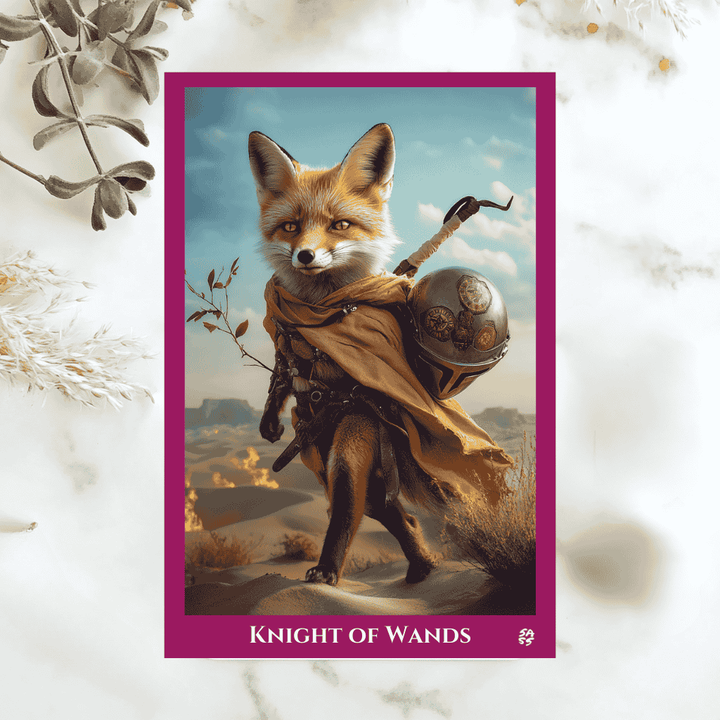 The Knight of Wands: Bold Moves and Fiery Momentum The Knight of Wands charges into our collective psyche this week, sword not drawn—but lit aflame. As the double retrogrades in Pisces stir the emotional waters and a Solar Eclipse in Aries cracks open a portal to new beginnings, this card arrives not with patience but with purpose. The Knight of Wands doesn’t wait for permission. He follows passion, acts on instinct, and learns by doing. Let’s explore the rich symbolism of this fiery card and what it means to channel your inner fox-on-a-mission. The Essence of the Knight of Wands…